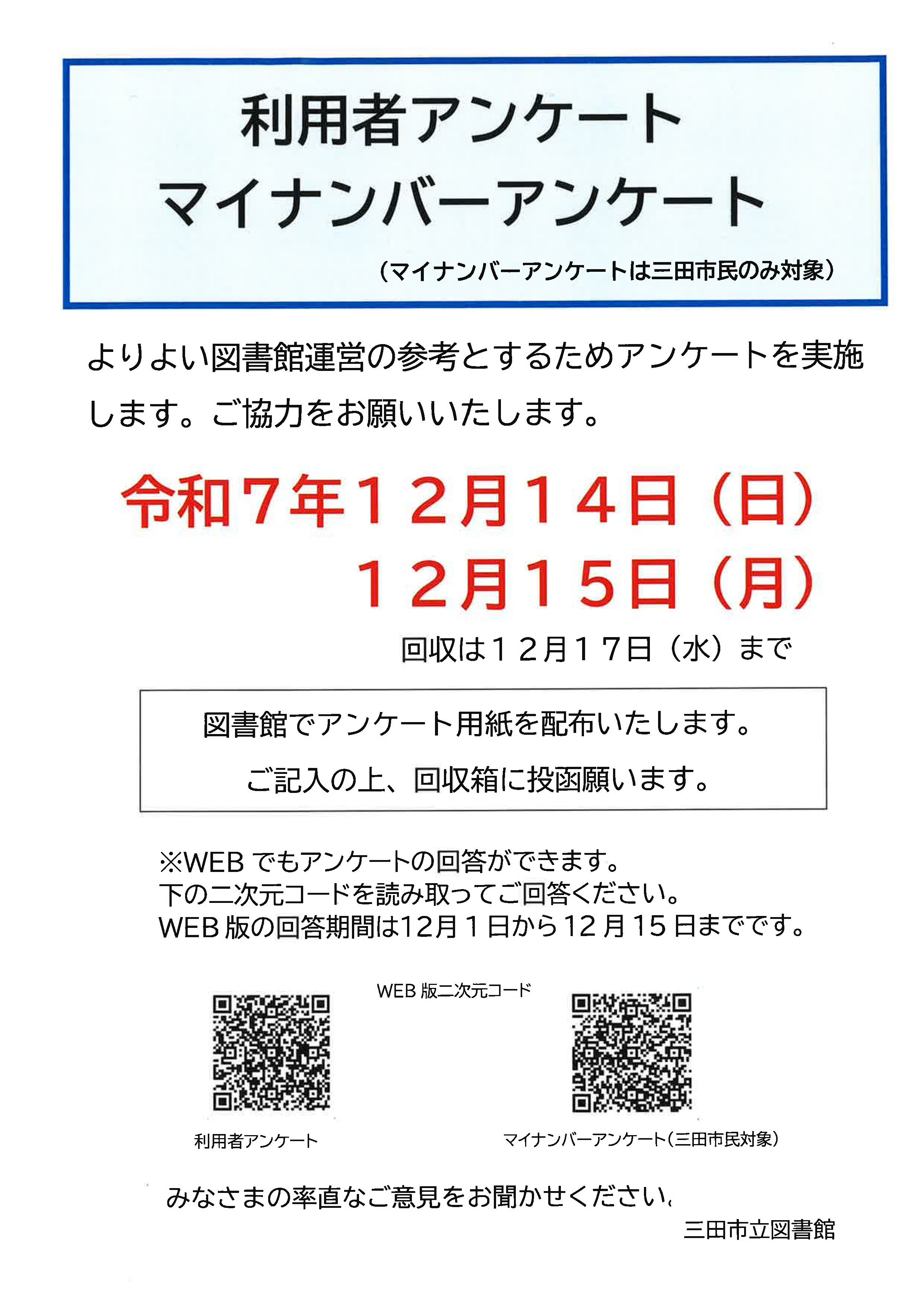※用紙の回収は12月17日(水曜日)まで